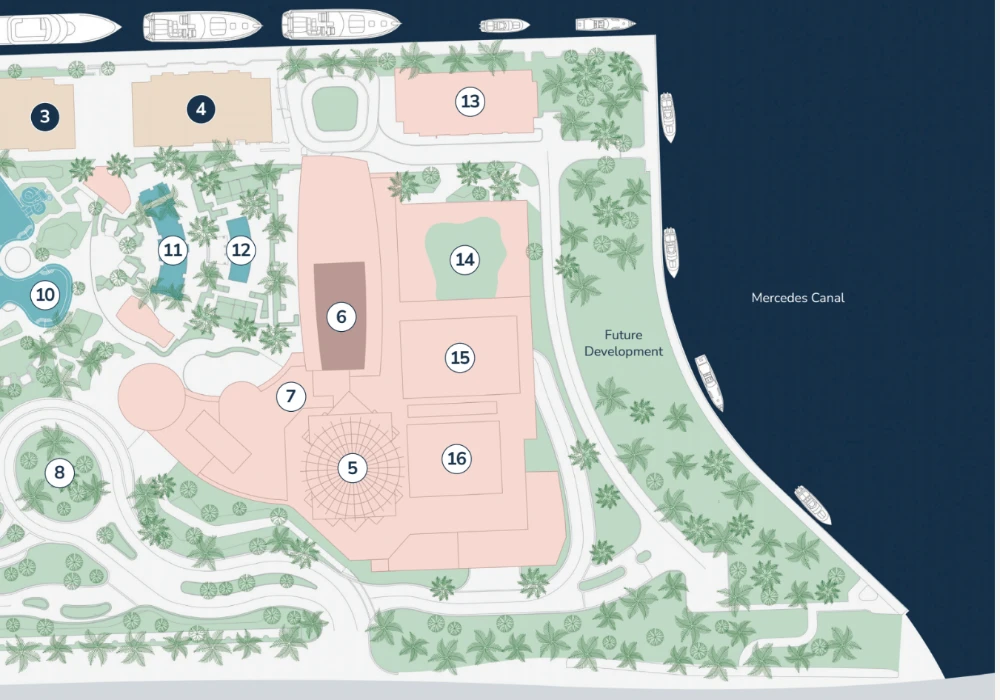 Lushly landscaped 32-acre resort with exceptional amenities, framed by the legendary superyacht marina featuring 5,000 linear feet of dockage with 164 slips, welcoming vessels up to 400 feet in length.