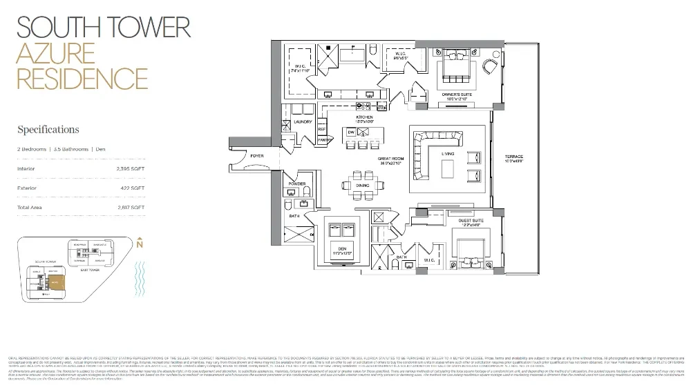 Unit Price ($USD) Sq.Ft. Value Sq.Ft. Views Orientation Status Azure 2,899,000 2,817 1,029 Ocean View East Available