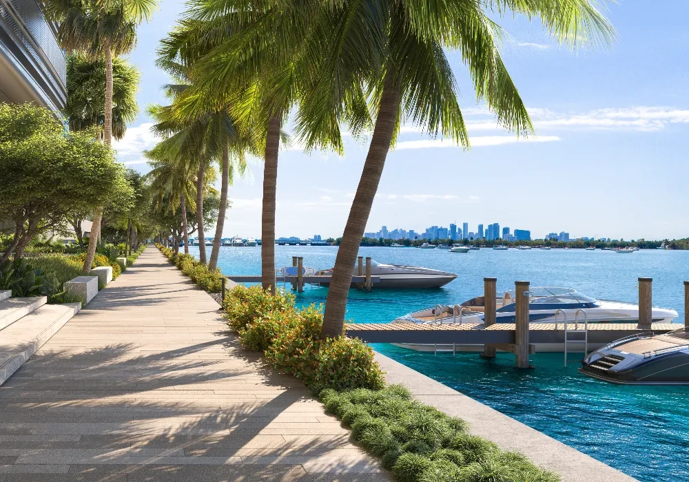 • Private marina with boat slips and 240-foot boardwalk fronting Biscayne Bay