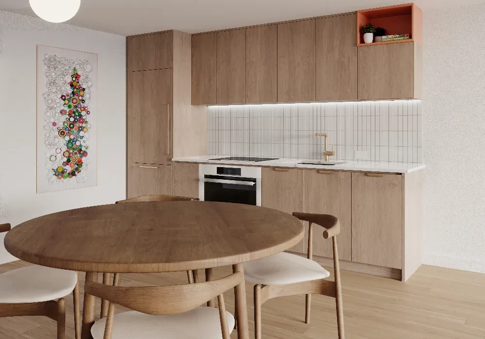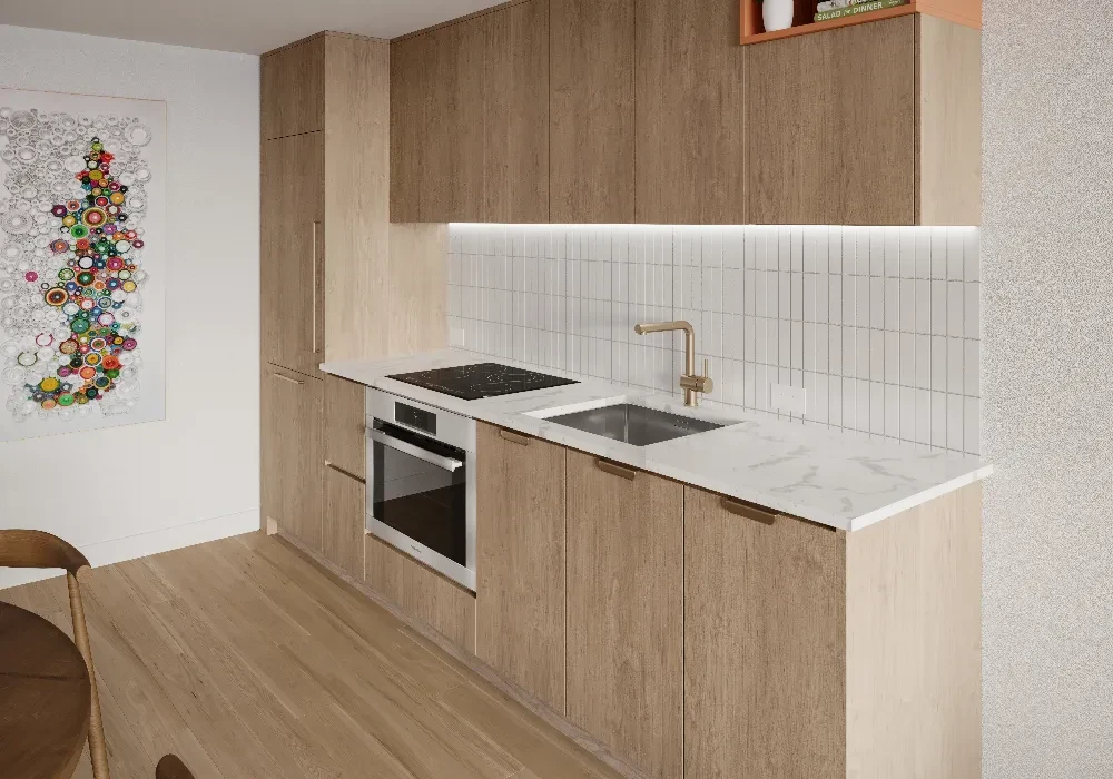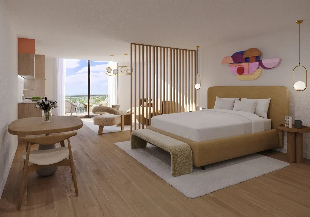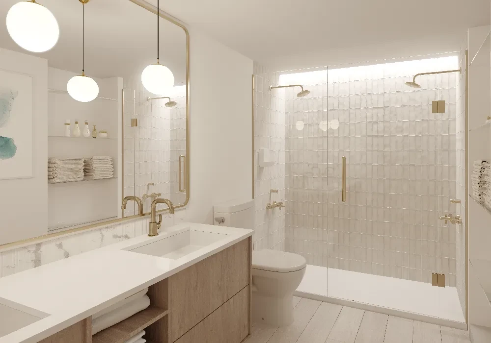 Residences will express the style and ethos that only The Standard can deliver, with meticulously curated interiors that provide the perfect balance between style and functionality. Finishes include light wood ceramic flooring, and modern kitchens with custom Italian cabinetry and Bosch appliances, while bathrooms showcase stone vanities and double-suite rain showers.