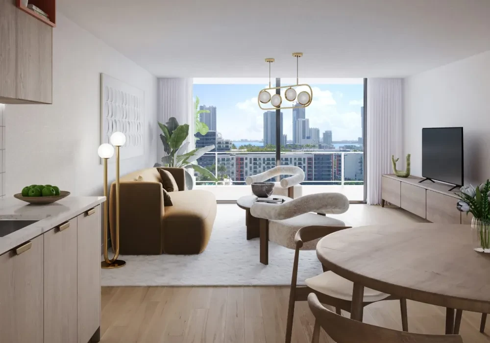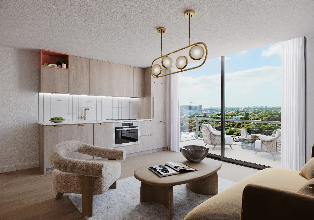 Private, finished outdoor terraces in select residences seamlessly connect with the vibrant energy of Midtown Miami