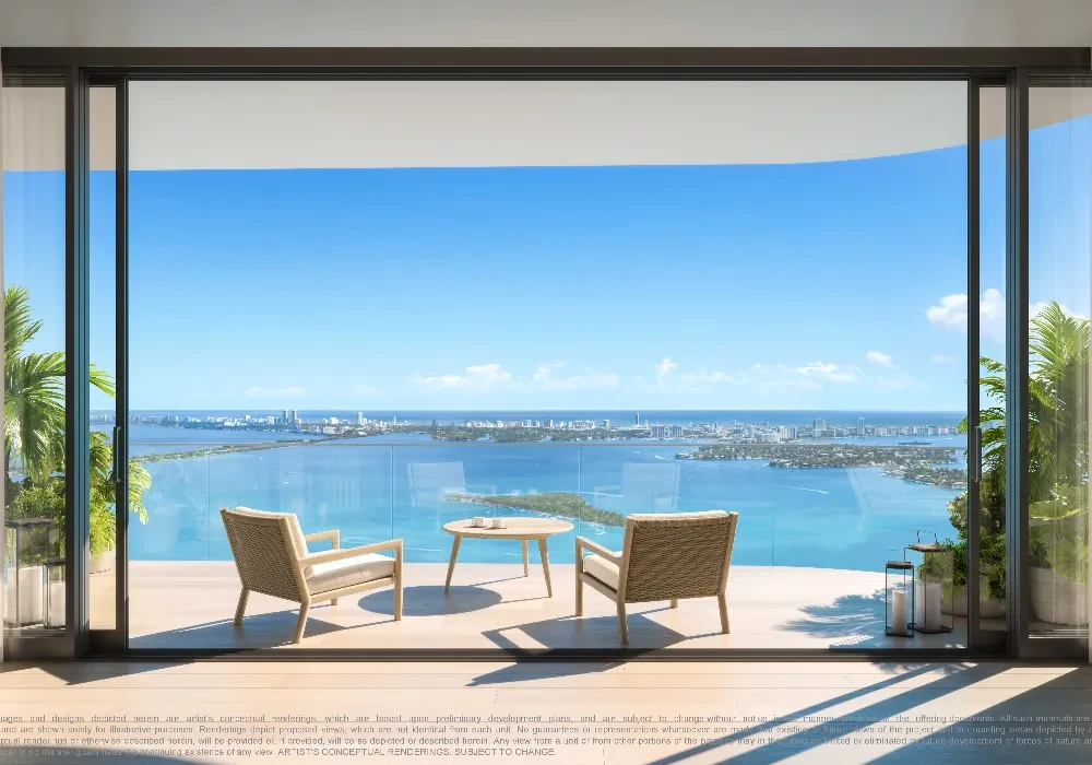 » Up to 10-foot deep terraces with panoramic views of Biscayne Bay, Downtown Miami, Miami Beach, and the Atlantic Ocean