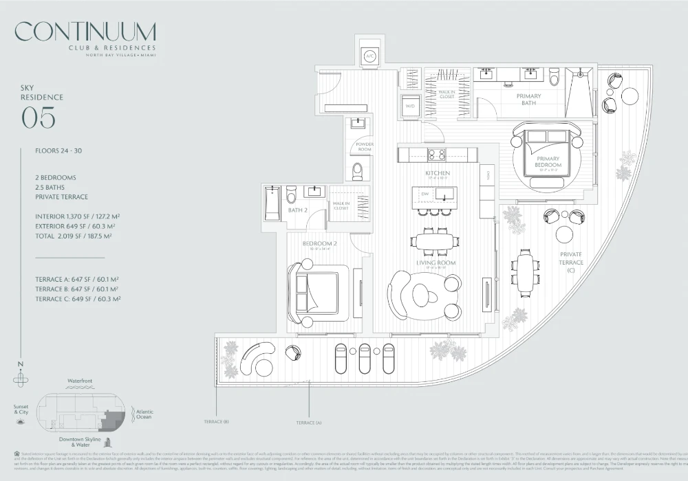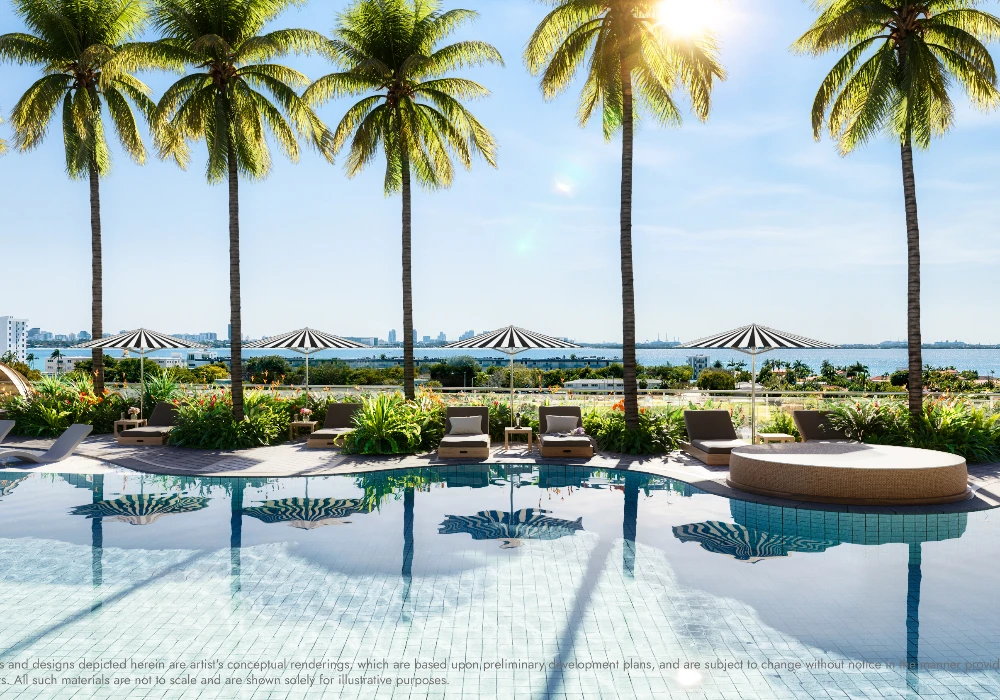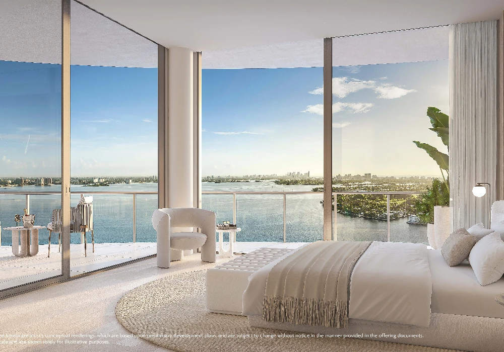 ∙ Private wrap-around terraces with stunning sunrise-to-sunset views of Biscayne Bay, Indian Creek and downtown Miami